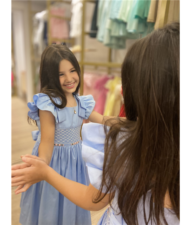 Vestido Azul Bebê com Laços