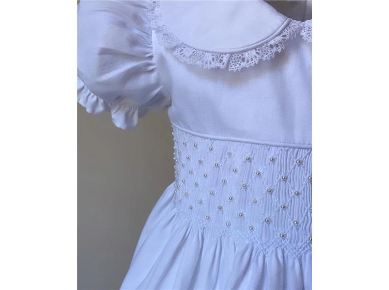 Vestido Branco com Pérolas e Guipir